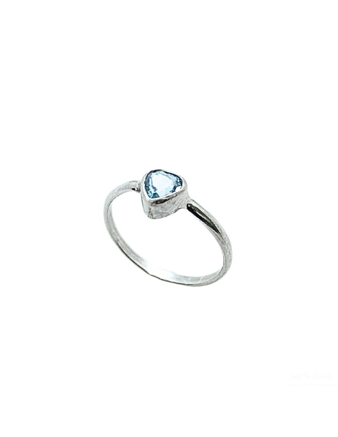 Bague artisanale argent rhodié et coeur topaze bleu T58