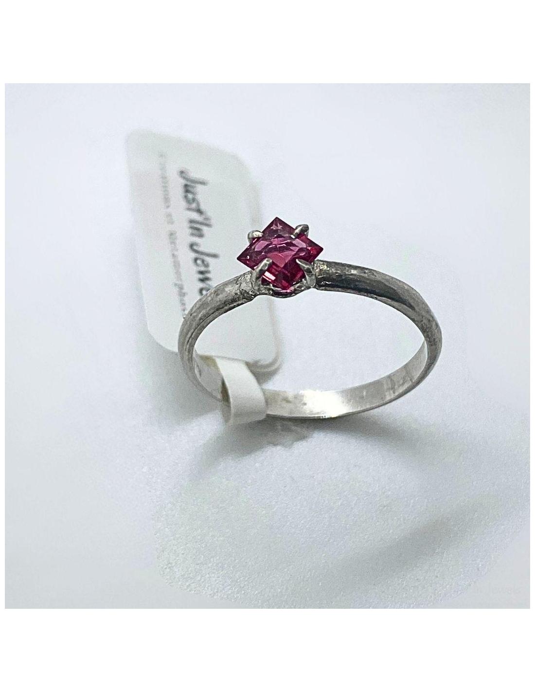 Création artisanale d'une bague argent avec une magnifique spinelle rose carrée de 5mm de côté