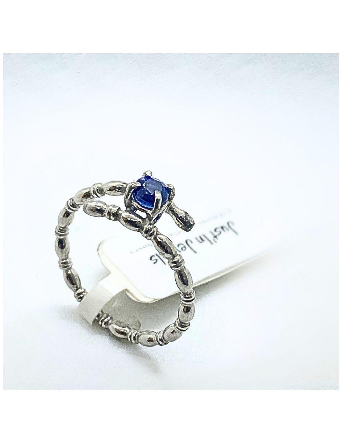Création artisanale d'une bague argent avec une véritable cyanite ronde de 4mm