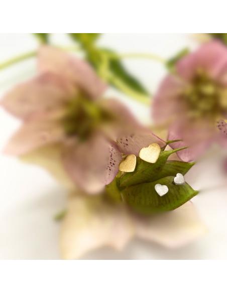 Puce d'oreille, système perceuse, un coeur plein de tendresse et d'amour de 5mm de côté avec un délicat effet de surface satiné