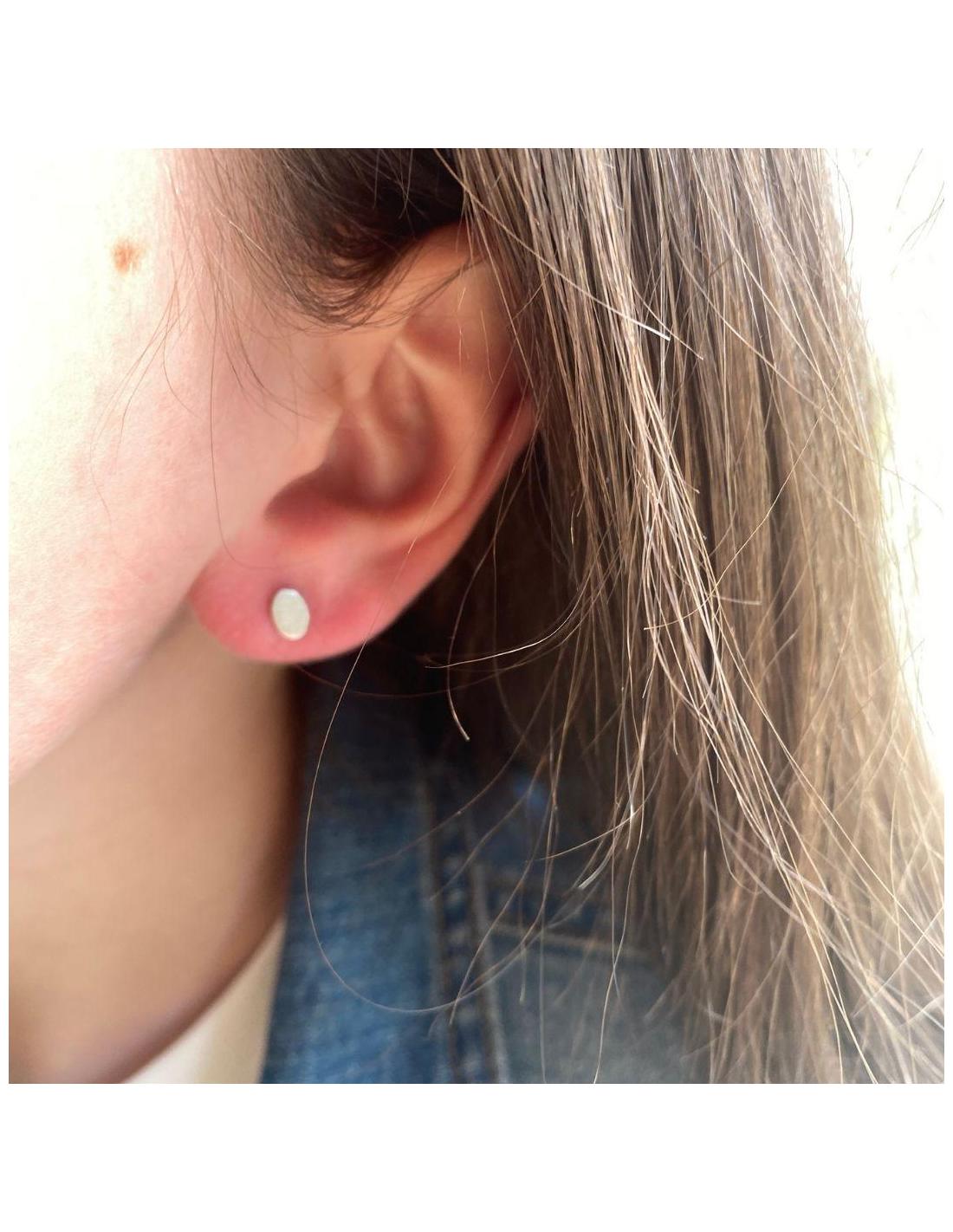 Puce d'oreille, système perceuse, une forme géométrique ovale de 6*4mm vous est proposée avec un effet de surface satiné