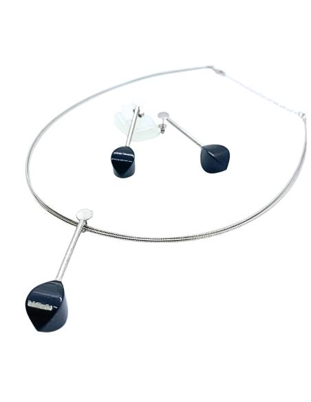 Boucle oreille argent rhodié tige et onyx 4 faces