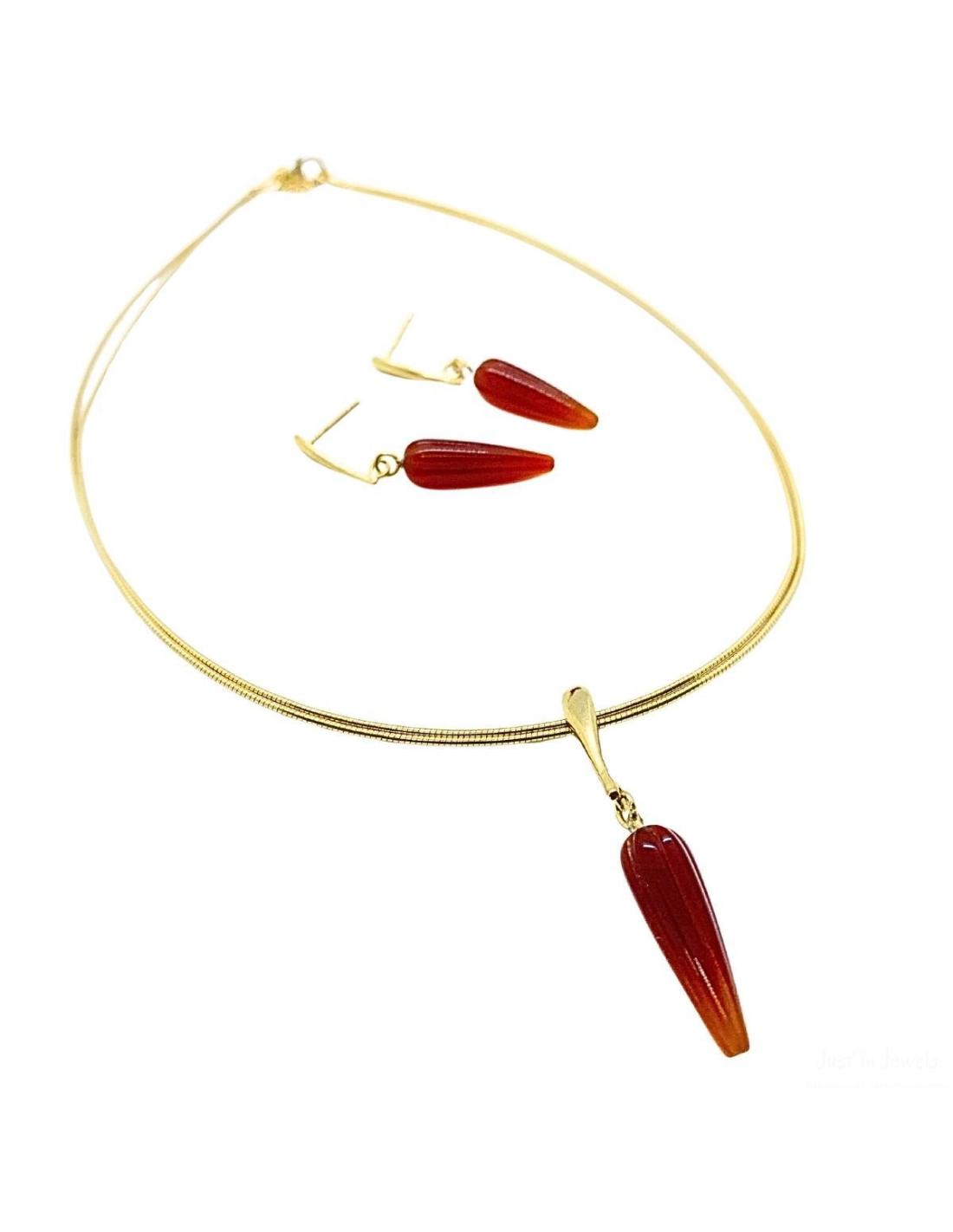 Dans nos créations réalisées dans notre atelier bijouterie artisanale de Ramillies, nous n'utilisons que des pierres fines naturelles, ici de la cornaline qui propose un superbe rouge orangé.
