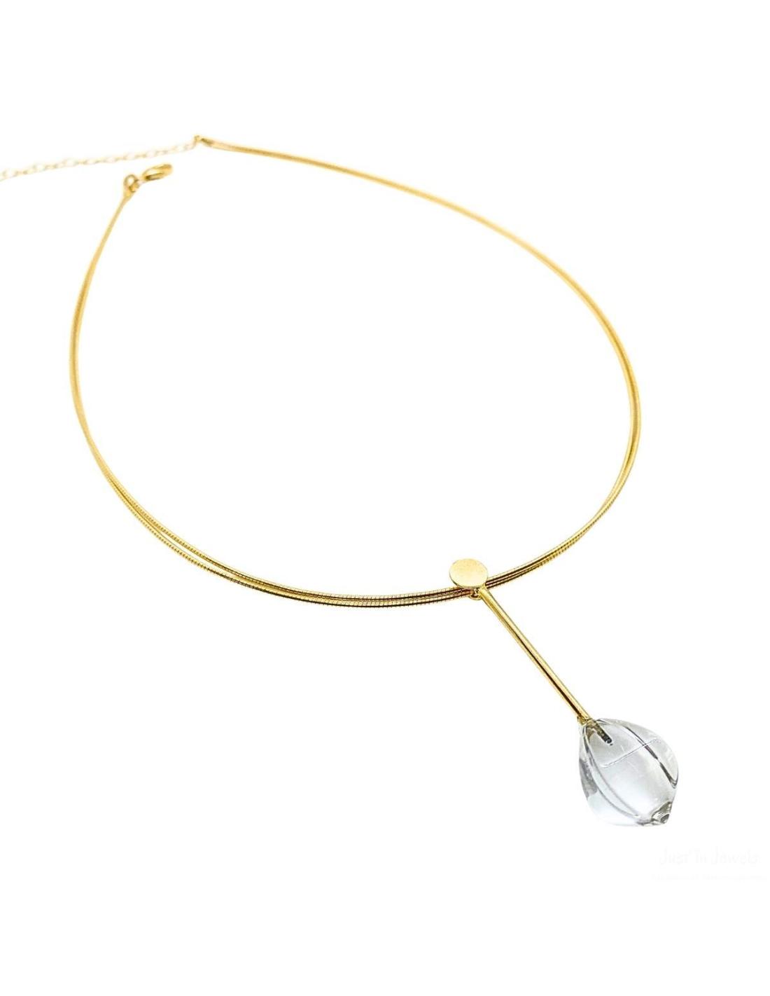 Collier artisanal argent vermeil double omega pendentif tige et cristal