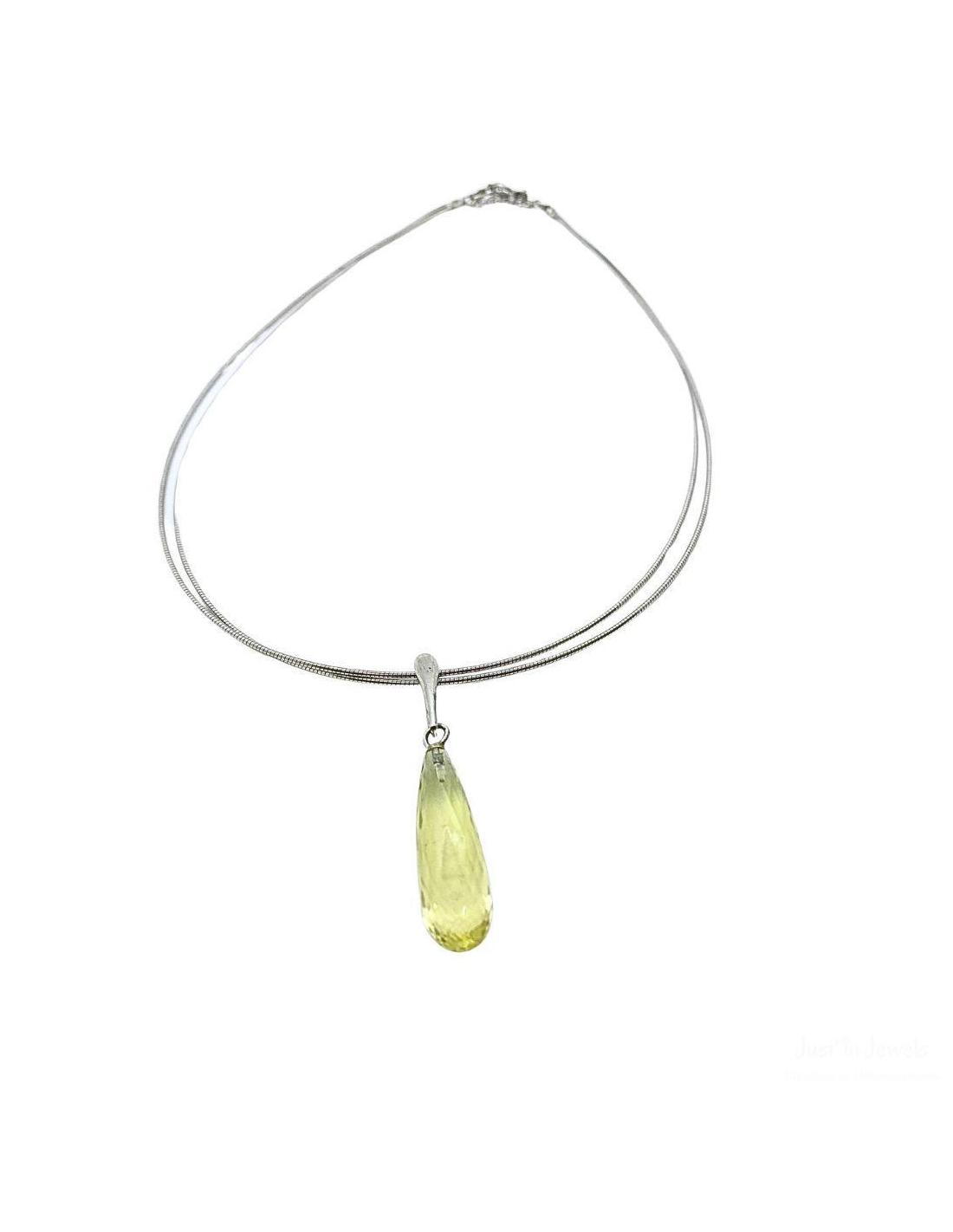 Tour de cou artisanal femme argent avec goutte quartz citron facettée